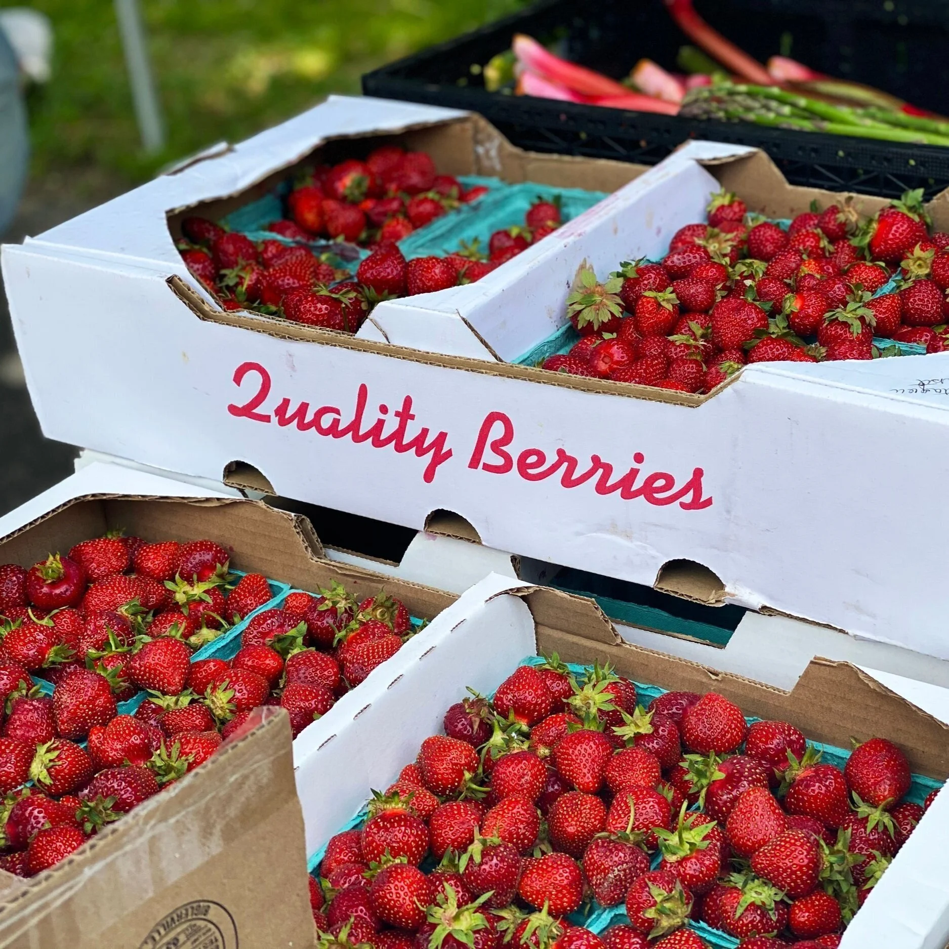 The most exciting part of our summer comes in June: for about three weeks we have acres of beautiful, red strawberries! Our u-pick field is one of the biggest in the state and we welcome everyone to come and taste our berries! Check out photos and read our FAQ page to find out what to expect.